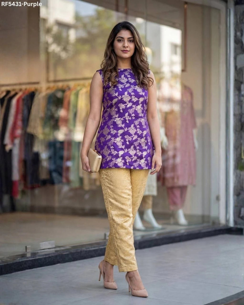 Banarasi Brocade Kurti Pant Set Sho...