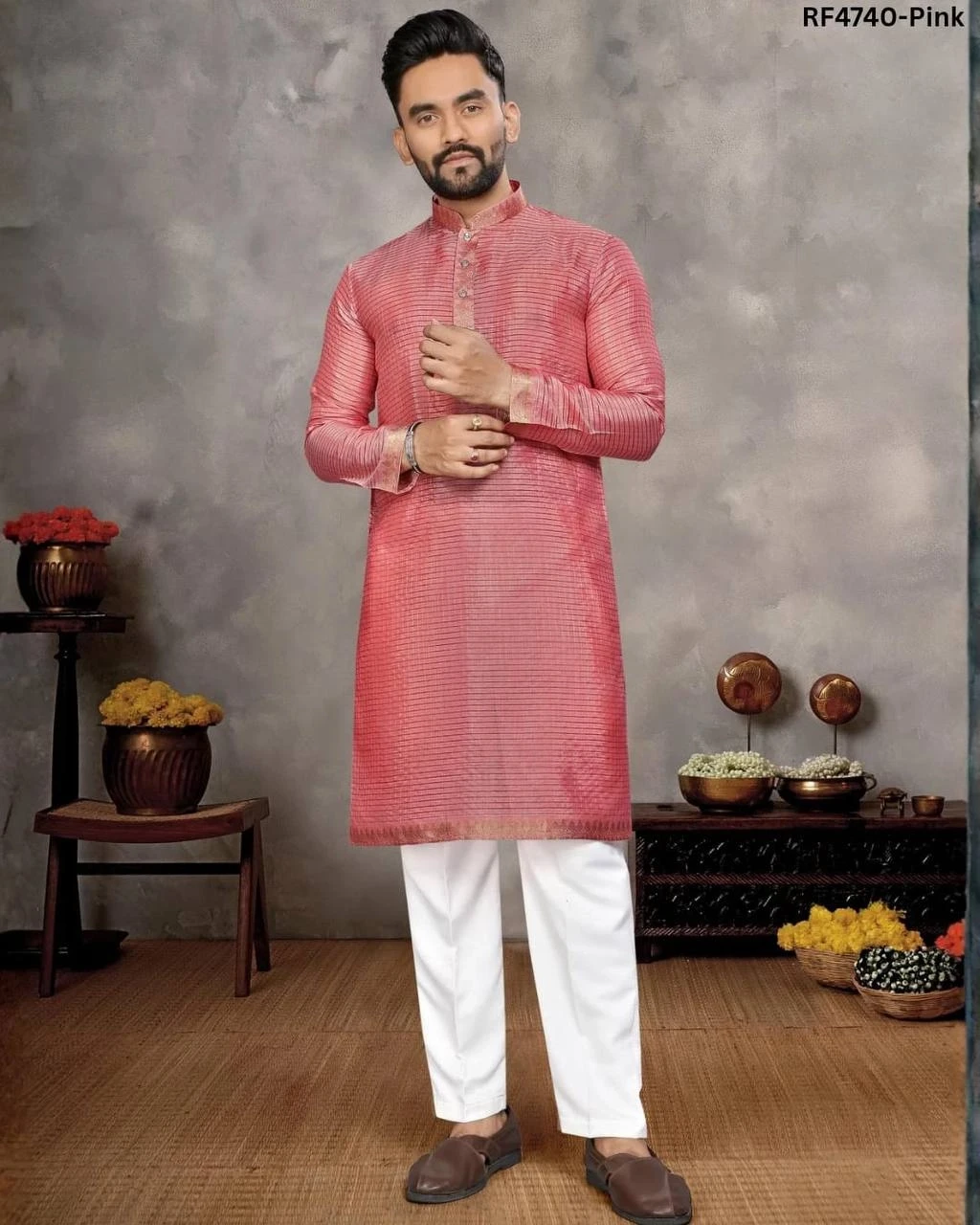 Elegant Couple Set: Men's Kurta & Women's Saree – A Perfect Match!