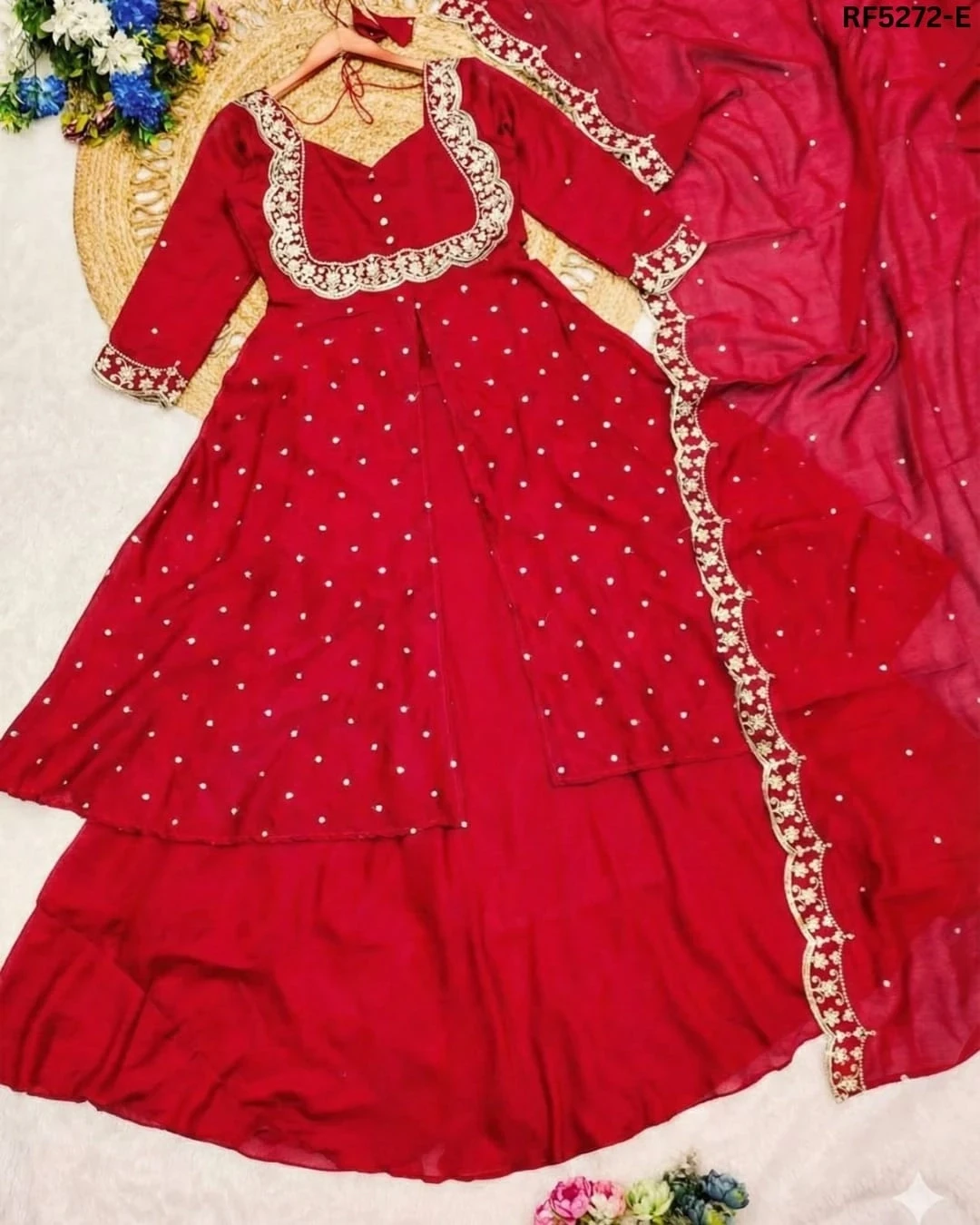 Elegant Heavy Roman Kurti Set with...