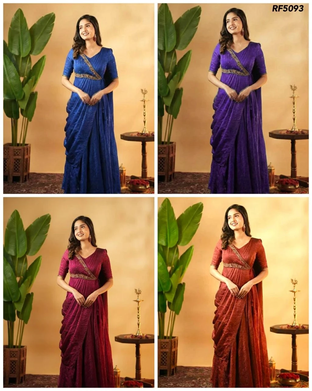Elegant Vichitra Silk Gown Saree with Embroidery Thread Work!